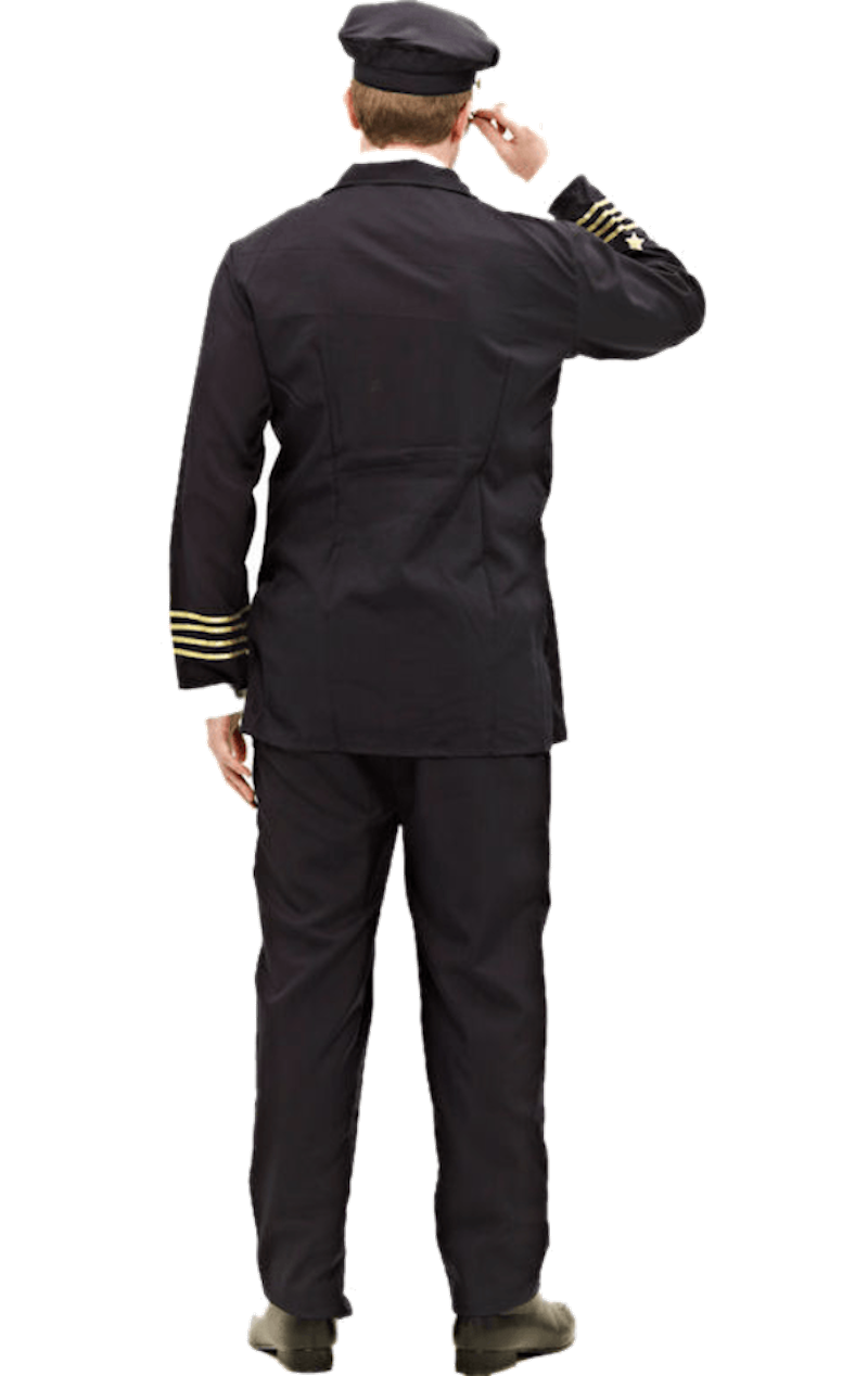 The Adult Pilot Uniform is made up of a black jacket with gold detailing, including stripes around the cuffs, buttons, and an aviator badge on the front. It also includes an attached white shirt and black tie. Completing the costume are matching black trousers and pilot hat with gold detailing and an aviator badge. You’ll have everything you need to look like a true professional.