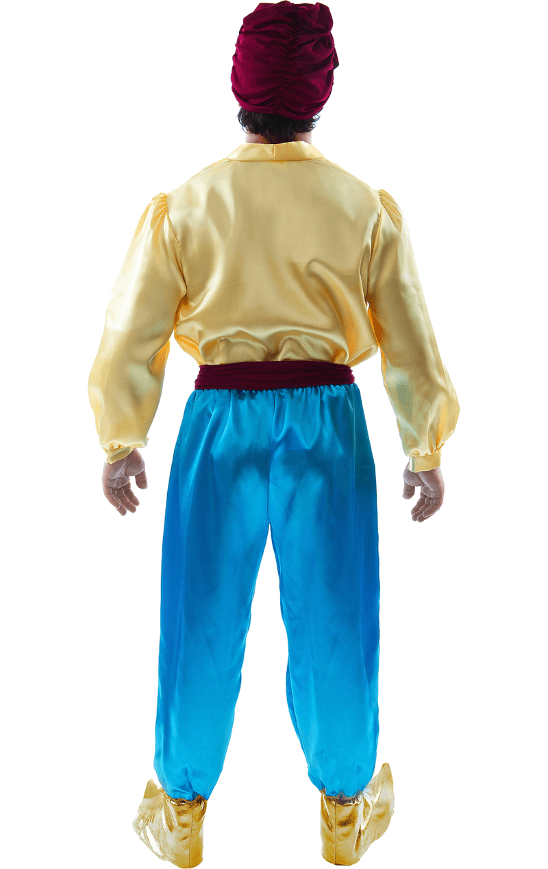 Includes: Top, Trousers with attached shoe covers, Turban, Belt