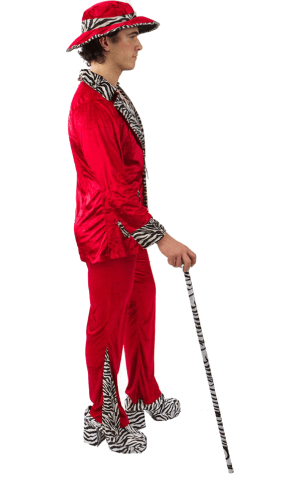 Our Adult Red Pimp Costume comes complete with a velvet-like long sleeve jacket, with a zebra print on the collar, pockets and sleeves. The outfit also features a matching pair of trousers with the same cool zebra-print effect. The final piece to the costume is an over-the-top matching hat that’ll pimp up your look to the next level.