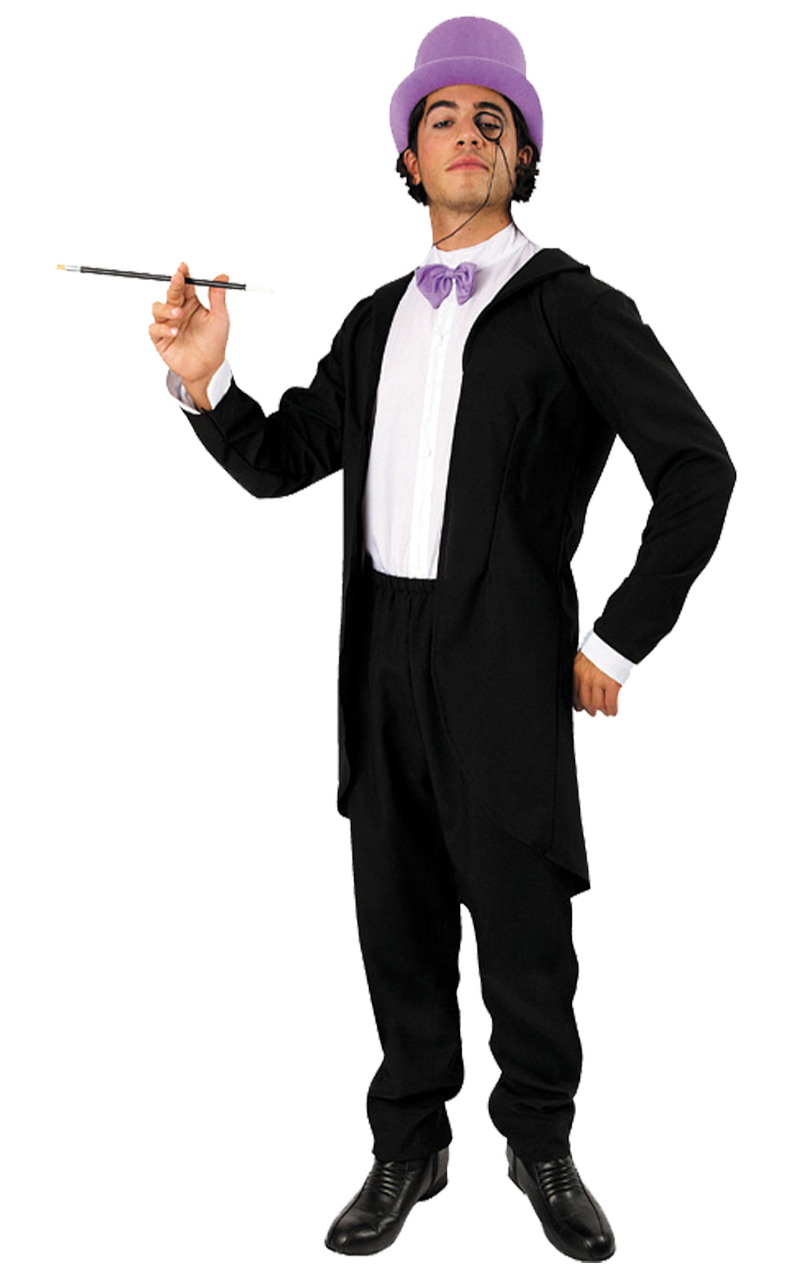 Our costume consists of a long black blazer and an attached white shirt with a lilac bow tie. To complete The Penguin Batman Costume, it also comes with a lilac top hat. All that’s missing is your monocle, and you’re all set to solve that mystery!