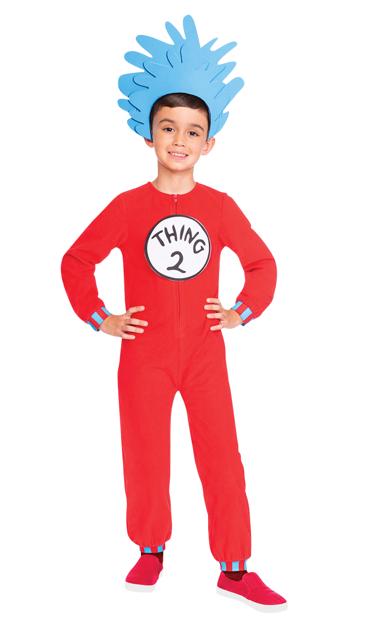 This World Book Day take a step into the brain of the mad and clever Dr Seuss! The ultimate costume for siblings, twins or best friends, this officially licensed Kids Thing 1 & 2 Costume will have your little one looking like they’ve jumped straight out of The Cat in the Hat book! Featuring one bright red jumpsuit and blue foam headpiece an and interchangeable “Thing 1” and “Thing 2” chest badge. Let your child or children rock up to school as their favourite imaginary mischief making characters, and share the celebration of Dr Seuss.