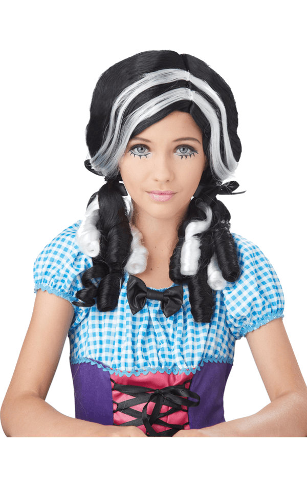 Our Black & White Doll Curl Wig is just the thing you need for your haunted doll costume this Halloween. This perfectly curled look is creepy and quirky. With white streaks throughout the wig, this doll surely must be old!