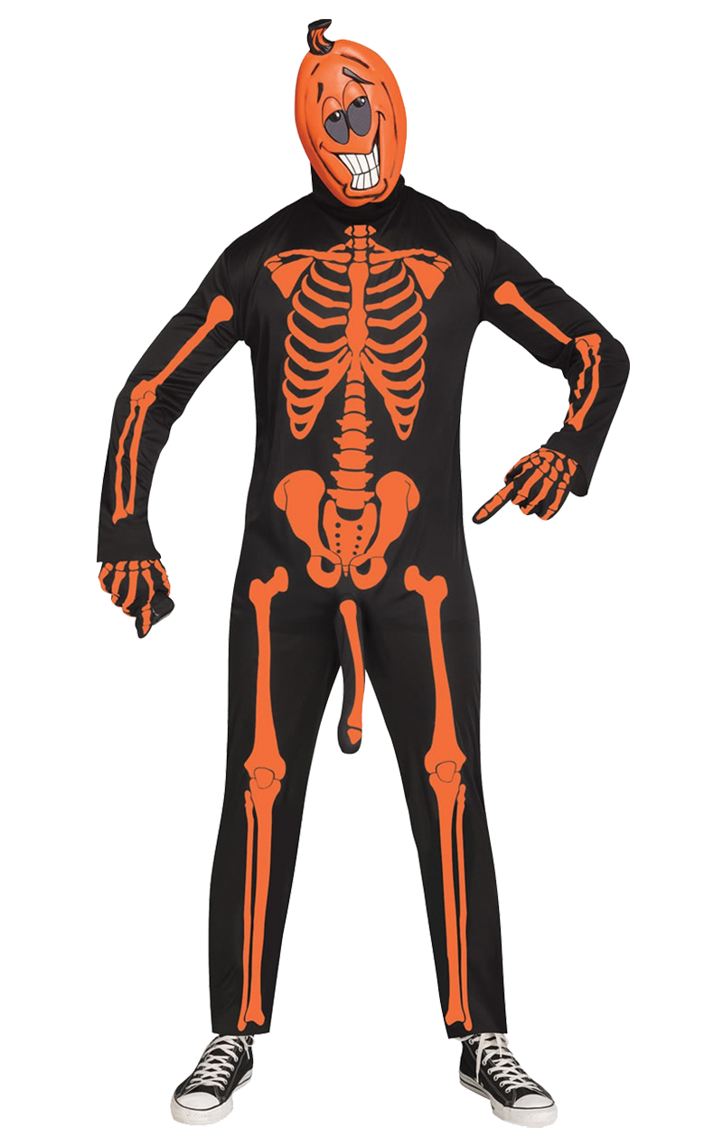 Is Halloween not risqué enough for you? Do you want to have a costume with a little bit extra bad taste? Then look no further than the Jack O Meoff Halloween costume! It’ll turn every head at the Halloween party! If the bright orange pumpkin head, with skeleton body suit isn’t enough for you, it also comes with an extra special accessory – The attached ‘bone’
