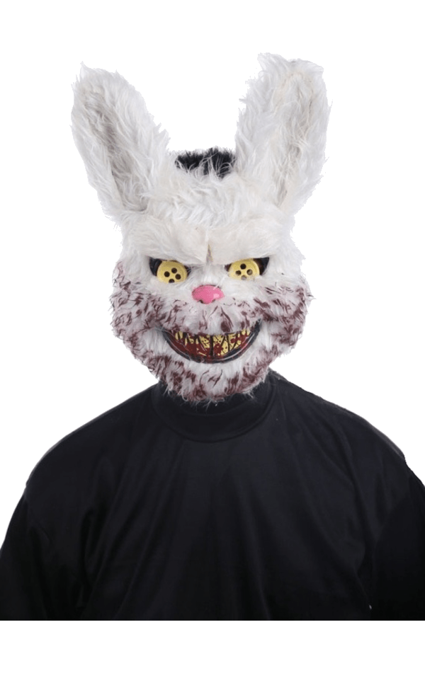 When good toys go bad! This Killer Rabbit Mask has torn into someone or something with its razor sharp teeth. Get into character with this cutely evil Halloween facepiece!