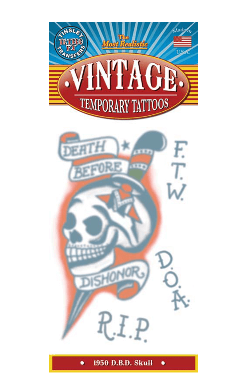 If you’re planning on going all out rebel without a cause this Halloween and you want some fake inkings to prove it, grab and apply the Outlaw Skull Tattoo Accessory and fit right in as a zombie punk, Hells angel or ghoulish goth at Halloween or any fancy dress party!