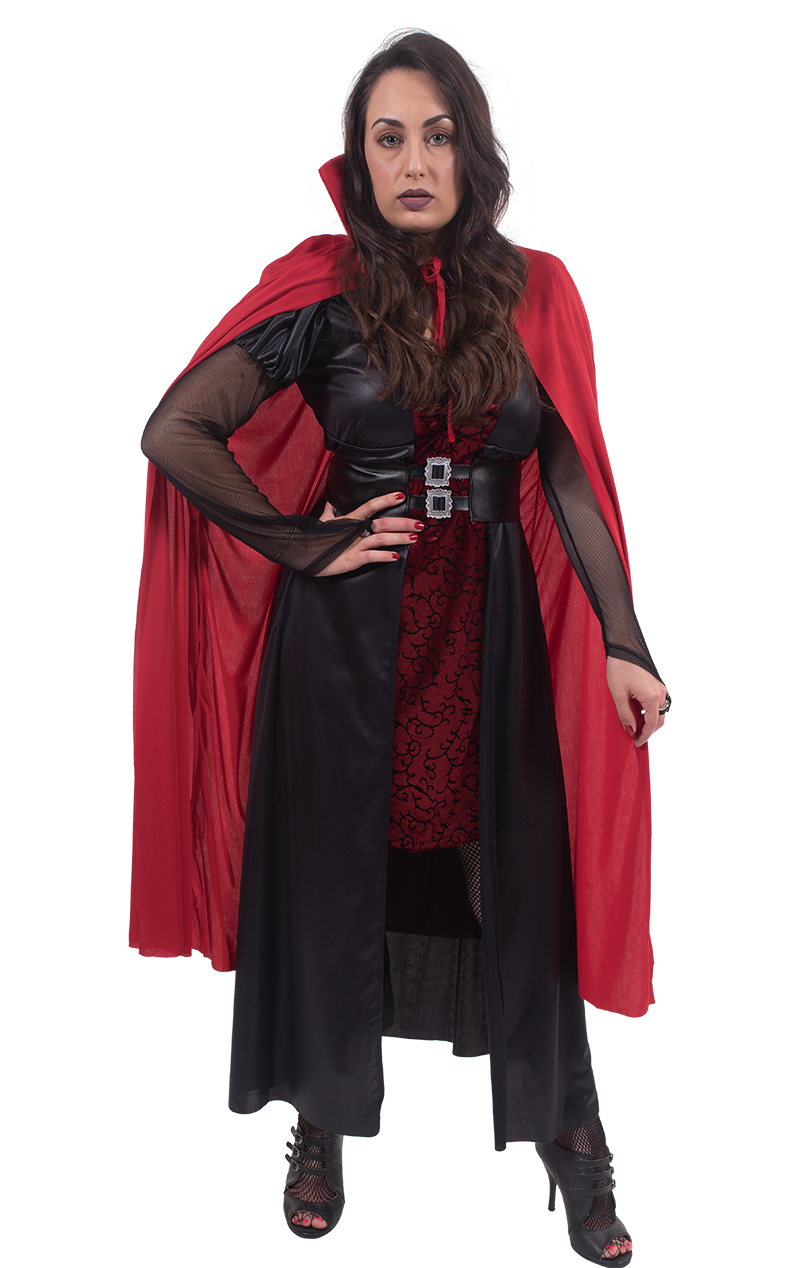 Check out this bright crimson coloured cape, perfect for flying, swooping, dramatic exits and lingering! Don your facepiece and drink some blood, it’s time to get this party started Halloween style!