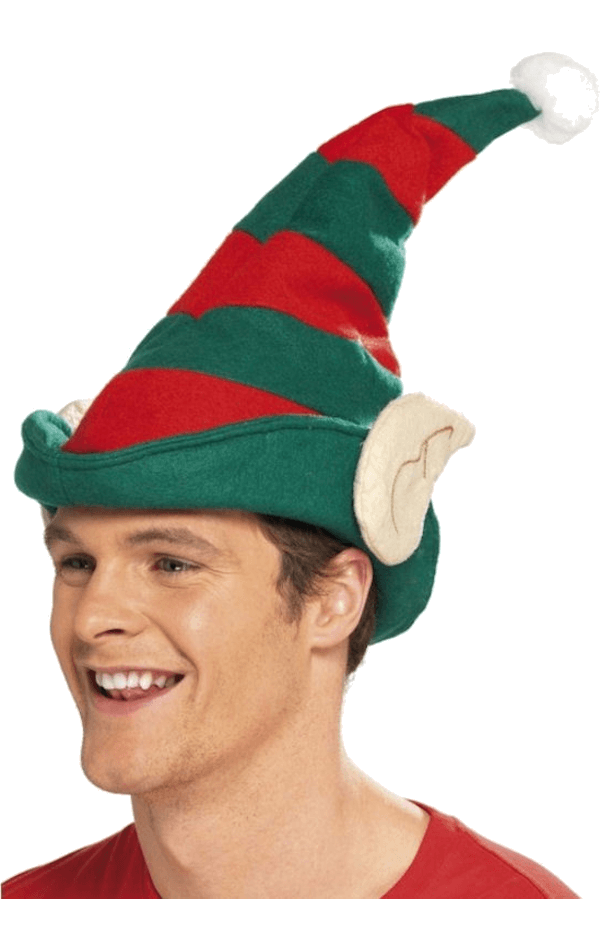 The Adult Elf Ears Hat Accessory is a fun red and green striped hat with attached elf ears and a white pom pom. This is a great addition to complete your elf costume or to add some extra Christmas cheer to your usual outfit throughout December.