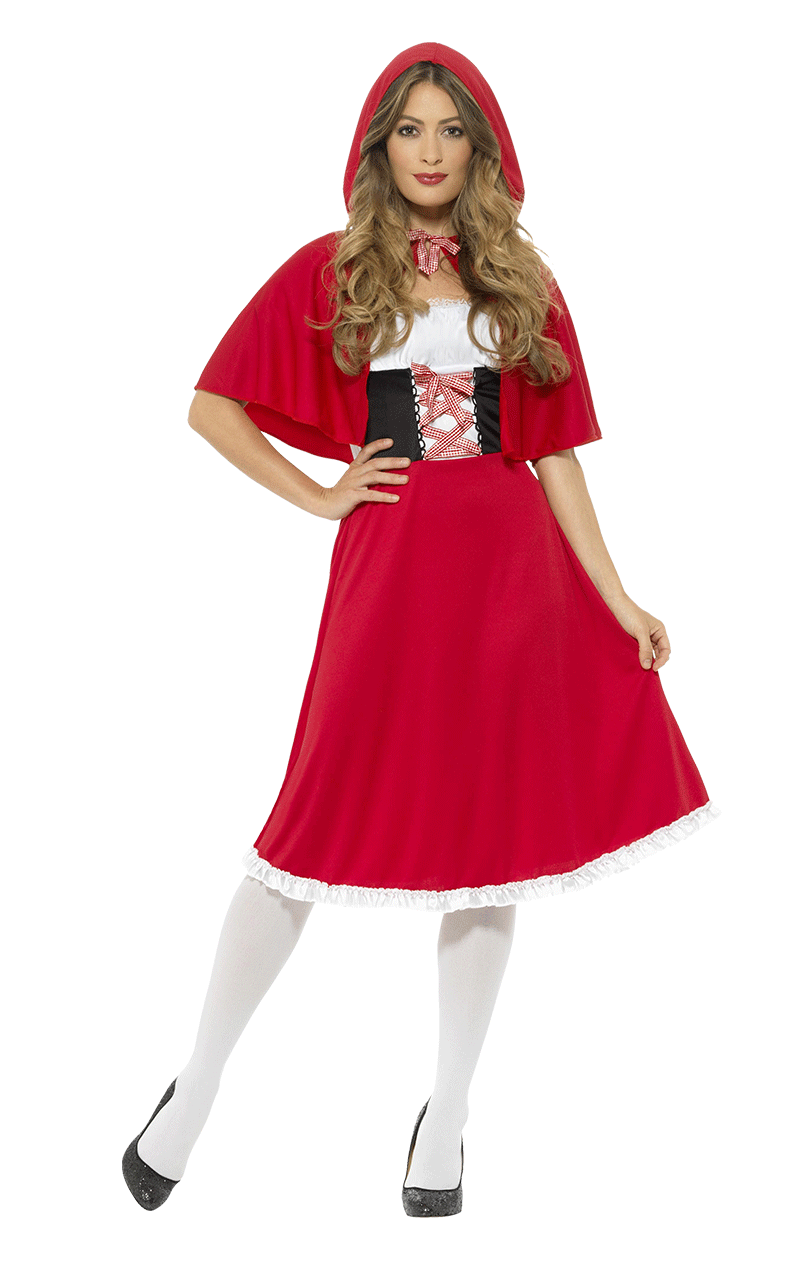 If you’re going to visit Grandma’s house wearing this outfit, be sure not to go it alone! The Adult Red Riding Hood Fairytale Costume is perfect for a fairytale themed party, and is even appropriate for teachers or parents this World Book Day. Make sure to have your wits about you, and double-check Grandma before entering her home in this red riding hood costume for women. This costume features a red midi dress with black and white bodice and gingham ribbon to lace it up. Pop the hood up on the satin capelet and you’re ready to head out into the woods – just beware of the Big Bad Wolf!