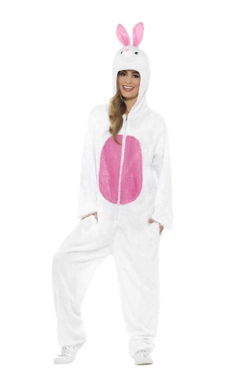 Got an Easter egg hunt coming up and want to give the kiddies something to cheer/chase? Going to a fancy dress party and want to hop into the cutest ever costume? The Easter Bunny costume will have you bouncing around the party getting petted, and getting into the animal spirit of it all! BOING! This is a one-piece suit designed to fit most adults up to approximately 48 chest.