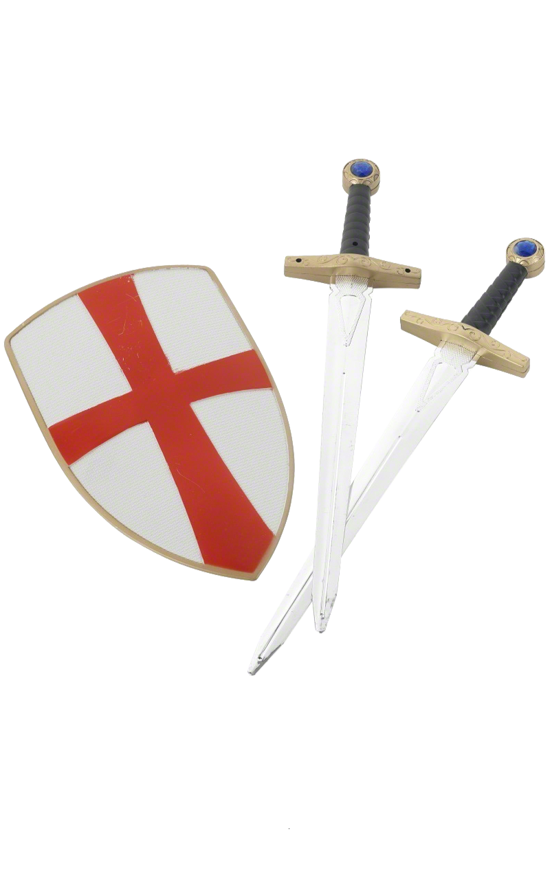 Stride into battle with the courage of a medieval warrior in our Knight Crusader Set! This set consists of two swords and a red and white shield. Swords measure approx 50cm from blade tip to end of the grip and the shield measures 30cm from top to bottom.