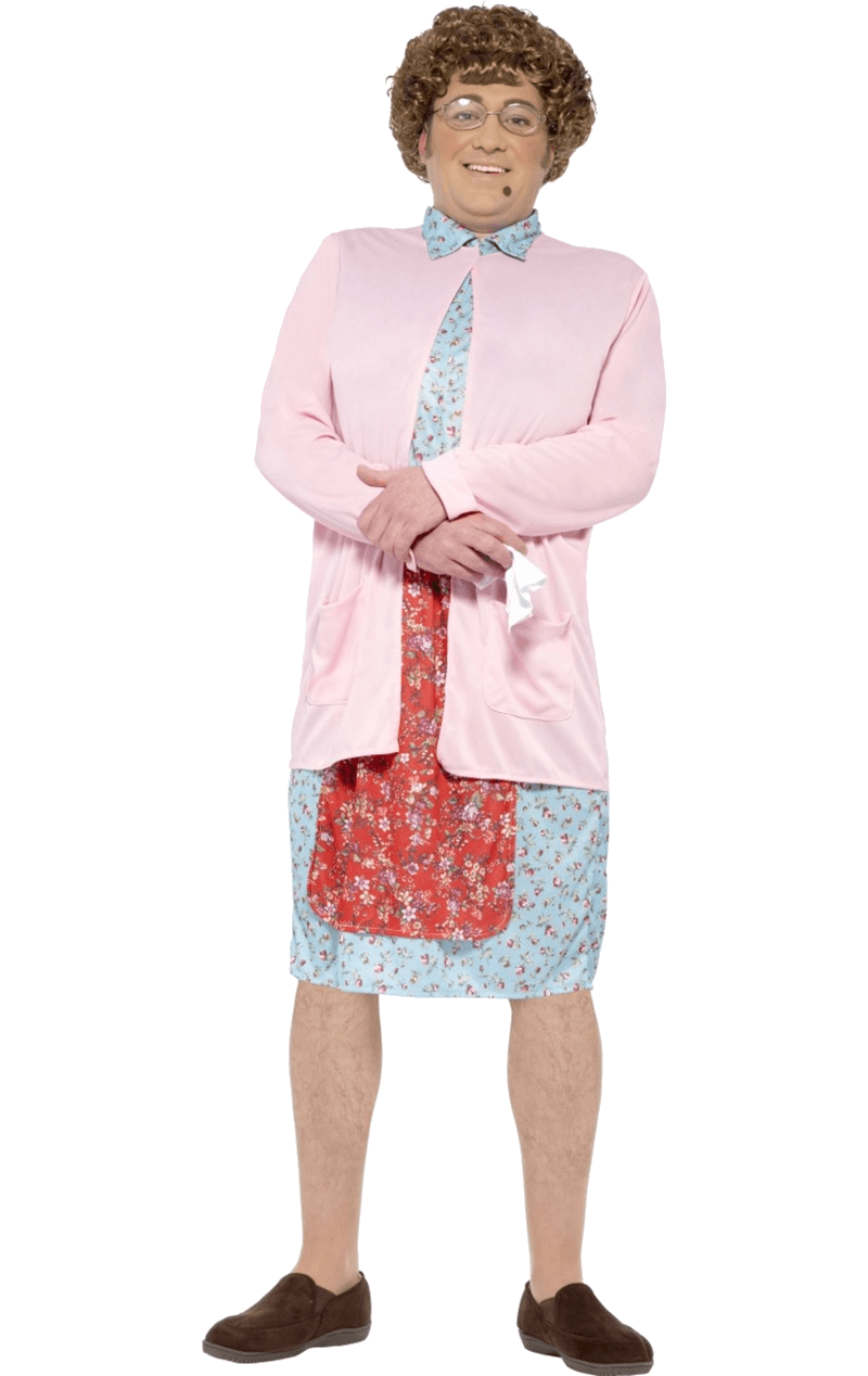 Transform yourself into the ultimate Irish matriarch in our officially licensed Agnes Brown costume of Mrs Brown’s Boys fame. No detail has been left out of this hilarious ensemble, from the signature pink cardigan, floral dress, hankie, wig and glasses through to the big brown chin mole – that’s nice!