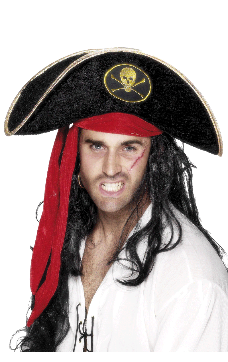 Every person who dresses up as a pirate for that fancy dress pARRty knows that to be taken seriously as a brave buccaneer you need to have that voice nailed, brandish that sword, search for treasure with your periscope and wear the right clothing! Wear the perfect and authentic looking seafaring Pirate Hat with Red/Gold Trim and take the pARRty seas by storm!