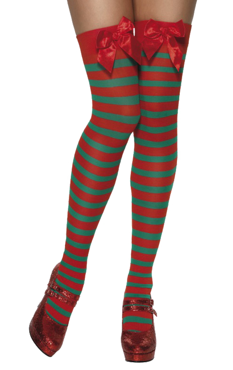 The Striped Elf Thigh High Stockings come in the festive colours red and green, with a satin red bow at the top to add a stylish and chic twist to your costume.