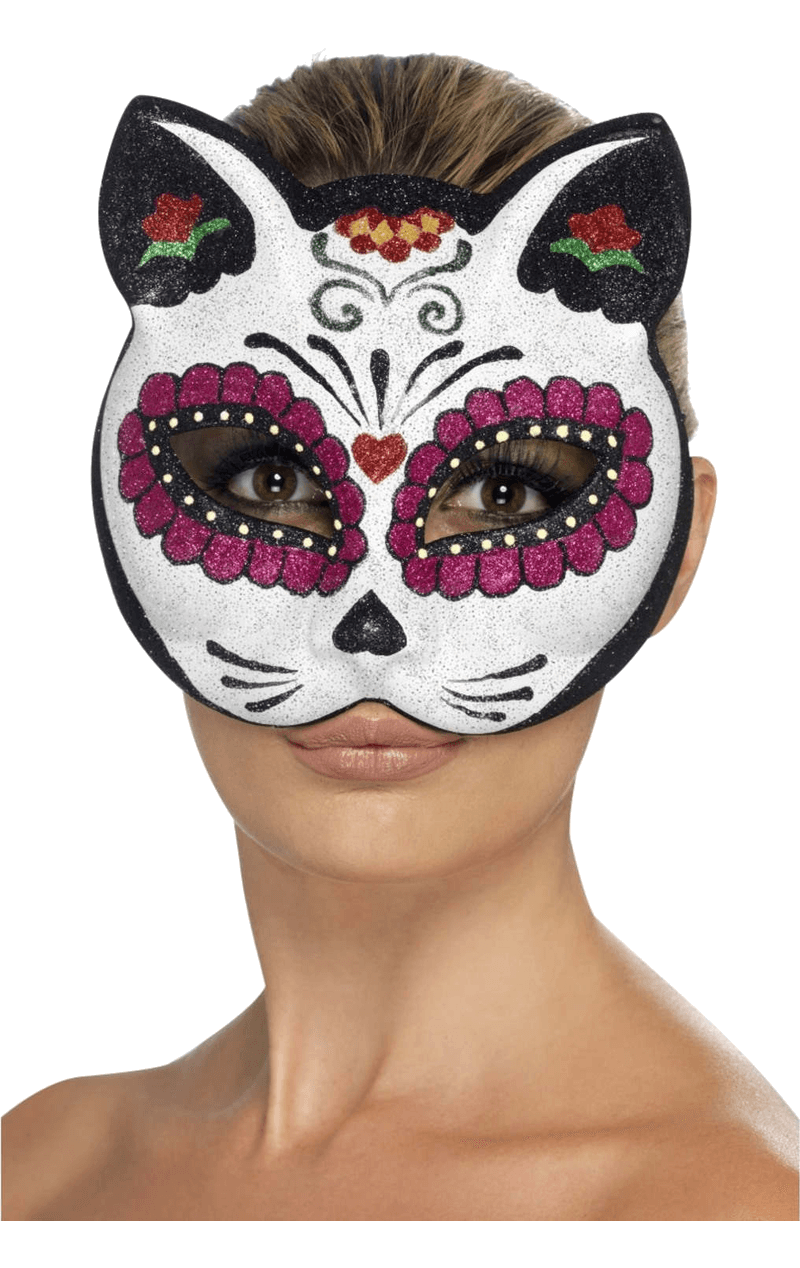 Got that Dia de los Muertos party to go to? Need something colourful and eye-catching to celebrate? This Sugar Skull Cat Eye Facepiece Accessory is purrfectly cute, and great for Halloween & Day of the Dead parties. The glitter will glisten as the party lights hit you and the mystery element is all fun and games!