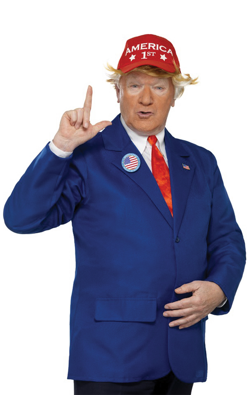 Be the star of the party with your convincing political campaign and silly style! Be the man who has it all, a millionaire’s golf course, the wife and your very own tower! Talk away at the next fancy dress party as guests giggle from behind! Believe me, you’ll make millions and millions of dollars in this costume, and you’ll be winning again!